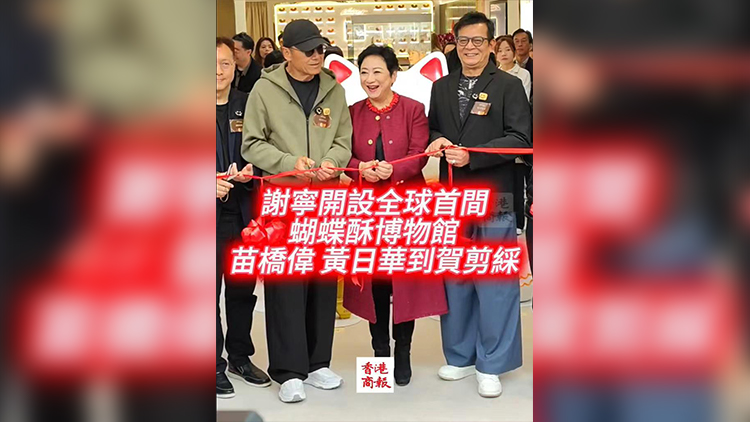息影後的港姐謝寧致力經營主打蝴蝶酥和曲奇的「曲奇四重奏」,今天(4日)更在尖沙咀開設全球首間「蝴蝶酥博物館」藝術慨念店,請來認識逾40多年的苗僑偉、黃日華任剪綵嘉賓。這間逾千呎的蘄新空間,打破傳統零售界限,將藝術、文化與美食完美融合。(雲遜、馮瀚文)