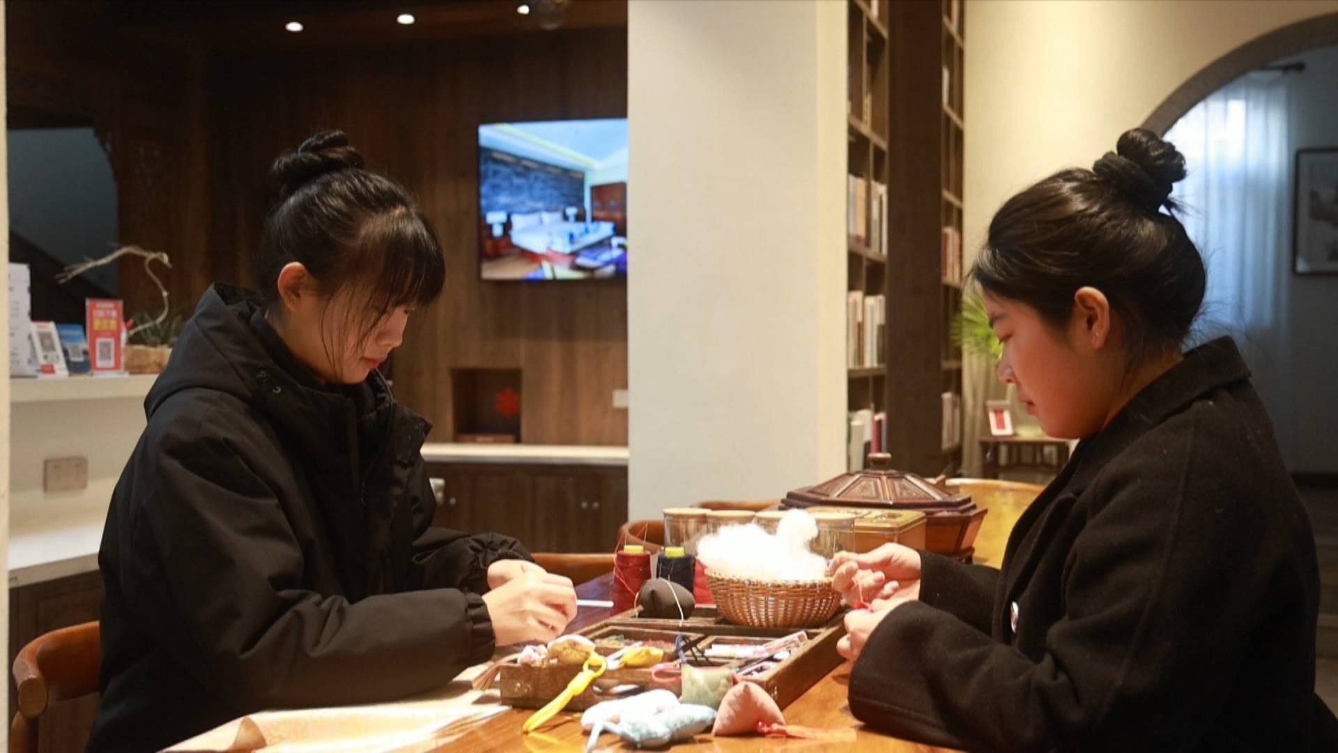 除了常見的節日布置,將互動項目融入住客的行程,成為吸引遊客、延長停留時間的新亮點。黟縣聯合精品民宿推出定製化年味套餐,將非遺手作、徽劇欣賞融入住宿體驗,讓遊客在詩意棲居中深度感受年俗文化。西遞景區泊心雲舍管家如心說:「我們民宿總共有29間房,目前從預定上來看初一到初四的房間入住率較高,達到了百分之八九十。在民俗活動方面,我們圍繞馬元素做了一些體驗活動,像製作手工小馬香囊、尋寶活動等,這些活動都是融入到入住的體驗之中。」