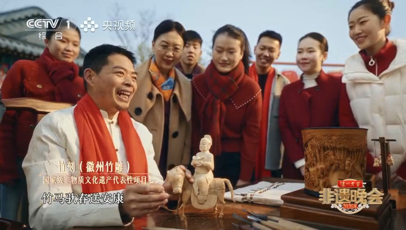 乙巳辭舊歲,丙午啟新程。由中央廣播電視總台與文化和旅遊部聯合攝製的《2026年非遺晚會》,將分上、下集,於2月19日、20日(農曆大年初三、初四)在CCTV-1綜合頻道20點檔黃金時段播出。安徽黃山市徽州區的國家級非物質文化遺產代表性項目「竹刻(徽州竹雕)」代表性傳承人洪建華,受邀參加節目錄製,並與蔚縣剪紙、景泰藍製作技藝等六位國家級非遺項目傳承人,作為開場節目,向全國觀眾送上新春祝福,不僅展示了徽州竹雕的精妙絕倫,更以「非遺大拜年」的形式,開啟了整台晚會的華彩序幕。