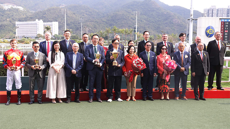 香港特別行政區政府民政及青年事務局局長麥美娟女士賽後出席頒奬儀式,將獎盃頒發予「醒目高球」馬主黃士心。此外,新界鄉議局主席劉業強議員;新界鄉議局前主席劉皇發的夫人,以及新界鄉議局副主席莫錦貴將頒發小型獎盃予馬主、練馬師羅富全及騎師班德禮。(文、圖、片:志誠)