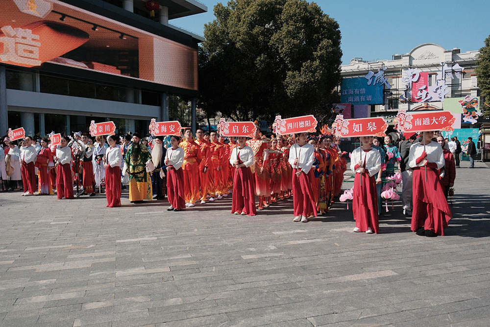 這項由南通市委宣傳部、南通市文化廣電和旅遊局、崇川區人民政府主辦,南通市文化館、各縣(市、區)委宣傳部、各縣(市、區)文廣旅局承辦的文化活動,集結13支特色方陣,以本土非遺為根基,融合八方文化與現代元素,在濠河之畔呈現了一場傳統與潮流交織的新春文化盛宴,吸引約6.8萬名市民遊客現場觀賞。