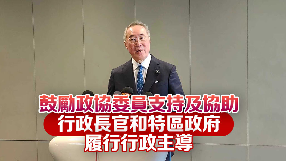 唐英年指出,首先是政協委員要支持行政長官和特區政府行政主導;香港今年將舉行選委會選舉,要做好有關選舉;支持香港繼續繁榮發展,金融穩定,加快發展北部都會區;加快發展創新產業及人才之都,維護國家安全,壯大發展愛港愛澳力量,未來政權要牢牢掌握在愛國者手中;香港要搶抓「十五五」機遇。他引述丁薛祥說,「十五五」有很多機遇,需要有膽識和懂得抓緊機遇,令香港未來發展踏上新台階,所以香港制定五年計劃是好事,令經濟快速發展,社會穩定。