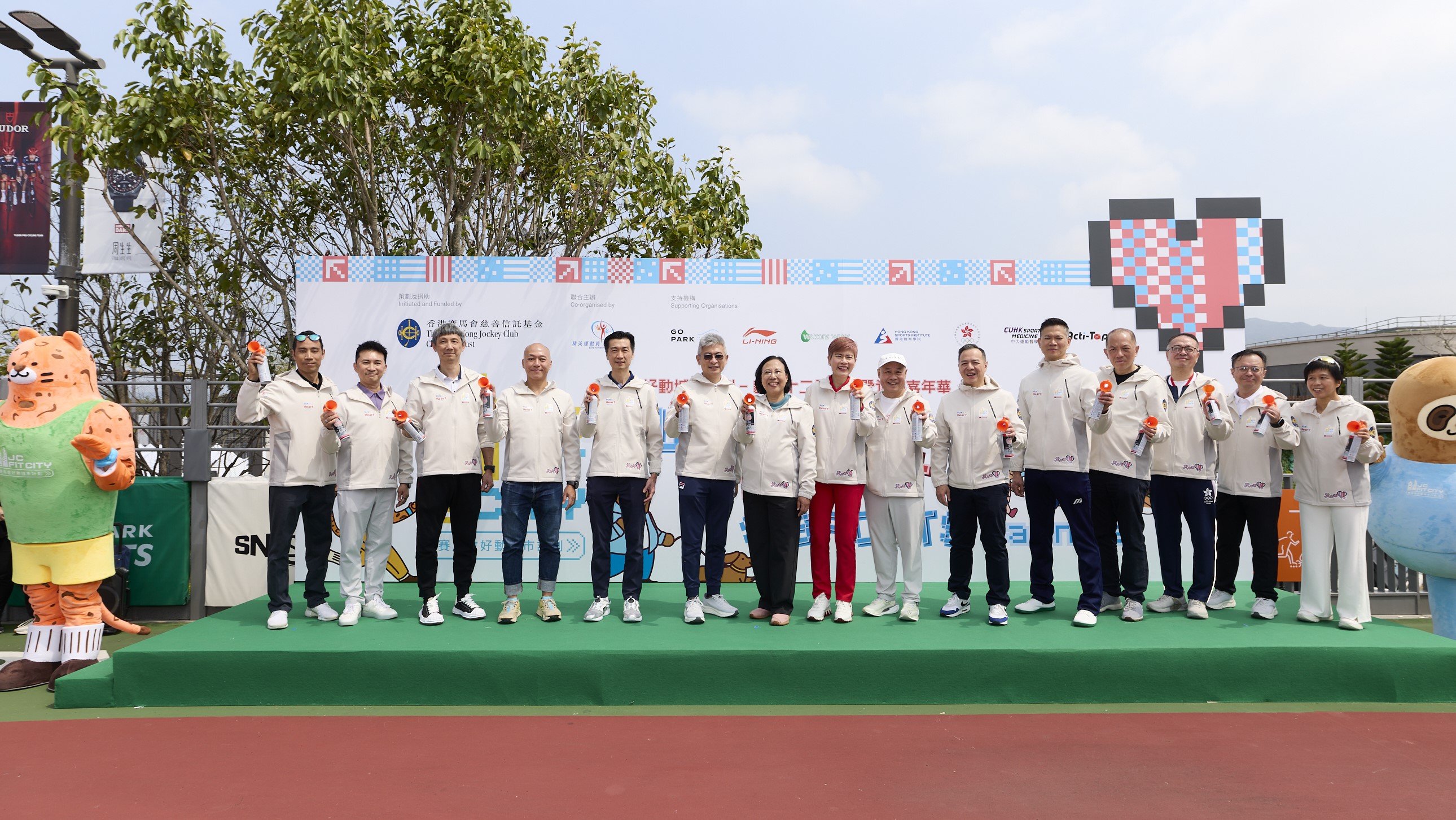 「賽馬會好動城市計劃 - 毅力十二愛心跑暨運動嘉年華2026」今天(7日)於西沙GO PARK舉行,吸引來自體育界、教育界、紀律部隊及各區市民,體驗多個以「紅白藍」為主題的運動挑戰,並在賦有「香港地」懷舊元素的運動打卡區,與一眾精英運動員參與這個活力滿滿的本地嘉年華。當中的「毅力十二愛心跑」吸引超過250支隊伍,接近1,600人以接力方式分別進行了約兩小時的長跑比賽,讓更多市民認識運動的好處,實踐健康的生活模式。