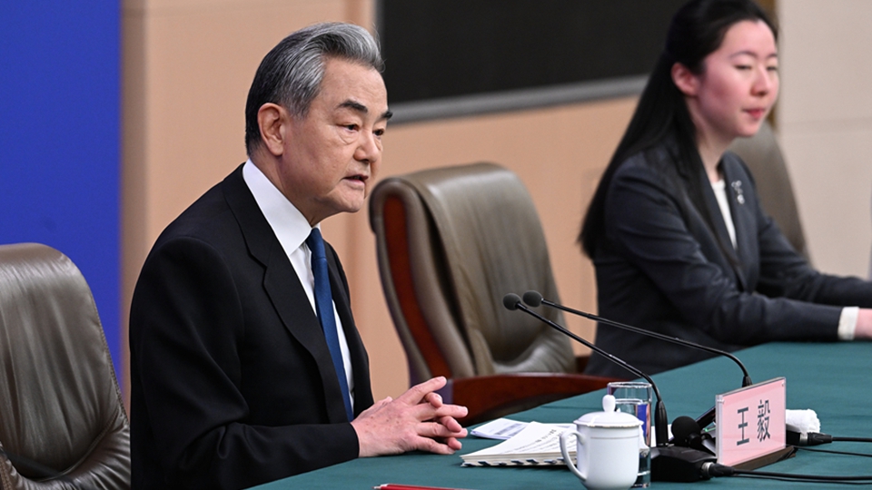 今日(8日)上午10時,十四屆全國人大四次會議在梅地亞中心新聞發布廳舉行記者會,中共中央政治局委員、外交部長王毅就「中國外交政策和對外關係」相關問題回答中外記者提問。王毅表示,面對變亂交織的國際局勢,中俄關係始終「風雨不動安如山」。