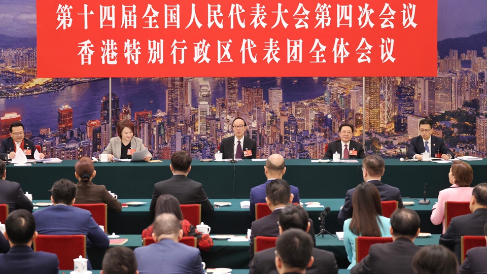十四屆全國人大四次會議香港代表團今日(8日)早上於人民大會堂香港廳舉行全體會議,審議生態環境法典草案。