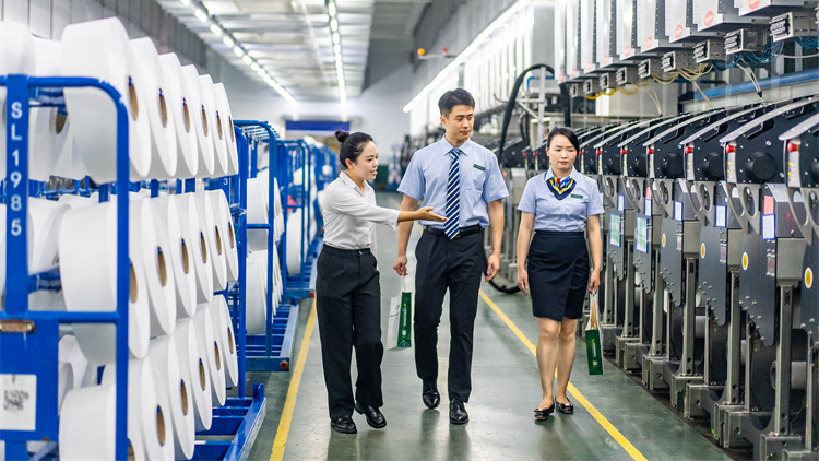 頂圖圖說:郵儲銀行客戶經理走訪綠色纖維產業高科技創新型企業。