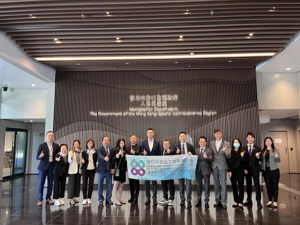 灣仔中西區工商業聯合會一行近日拜訪香港入境事務處總部,展開了一場近距離了解本港出入境管理及服務運作的深度拜訪。出席活動的該會成員包括:創會主席暨行政總裁李鋈發,永遠名譽會長劉亞非,副主席李豐年、楊學深,榮譽副主席陳然,常務會董錢佩群,會董盧一峰、吳浚銚、何煒瑩,榮譽顧問陳少康、李玉清,義務法律顧問譚健業。