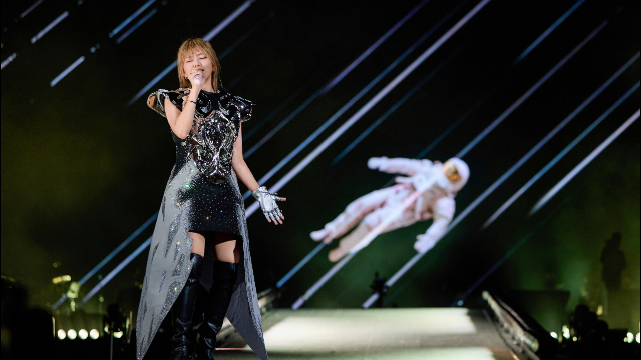 昨晚(15日)尾場,樂迷情緒更加高漲,開場的連串快歌已觸動樂迷的跳躍神經,全站起來揮動熒光棒跟着燕姿邊唱邊跳,場面震撼。