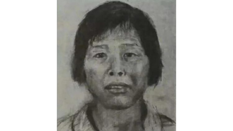 頂圖圖說:廣州警方繪製「梅姨」的第一張模擬畫像,於2017年6月公開懸賞。