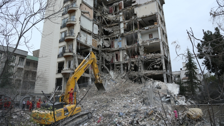 頂圖圖說:3月23日在伊朗德黑蘭一處居民區拍攝的被毀建築,該居民區曾在美以軍事行動中遭受襲擊。(新華社)