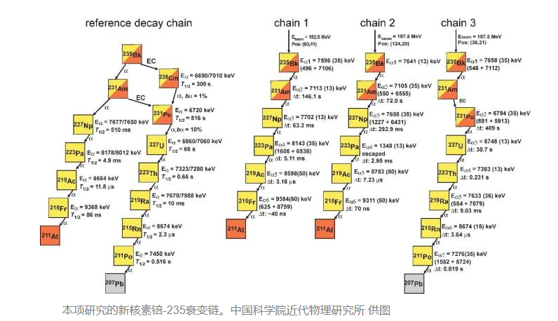 圖:本項研究的新核素錇-235衰變鏈。中國科學院近代物理研究所 供圖