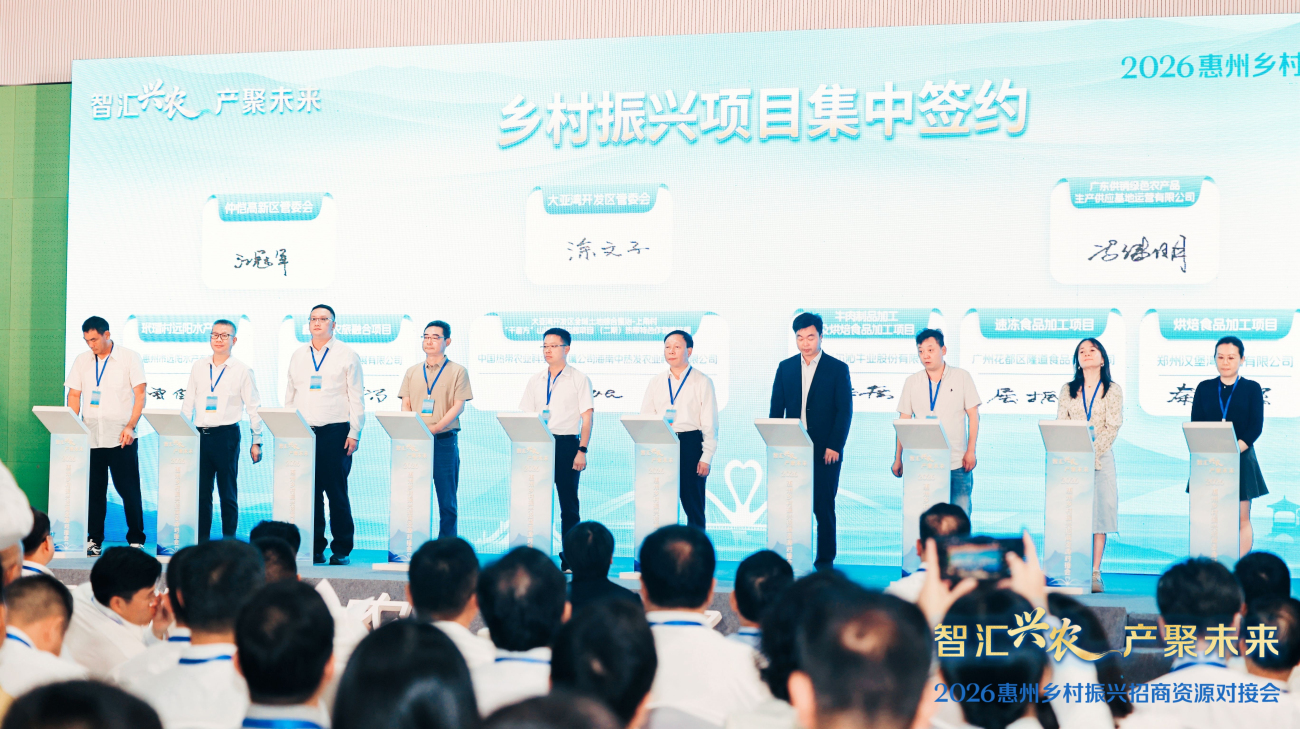 3月31日,2026年惠州鄉村振興招商資源對接會在博羅縣泰美鎮粵港澳大灣區(廣東・惠州)綠色農產品生產供應基地舉行。此次招商對接會成果斐然、亮點紛呈,現場舉行的鄉村振興項目集中簽約儀式掀起合作熱潮,成功簽約41宗優質項目,總投資54.69億元,為惠州鄉村振興注入強勁資金流與發展活力。簽約項目覆蓋特色種養、農產品精深加工、農文旅融合等多個核心領域,每宗都是帶動能力強、科技含量高、綠色底色濃的標桿項目,將成為惠州農業農村現代化發展的「新引擎」,推動鄉村產業發展提質升級。
