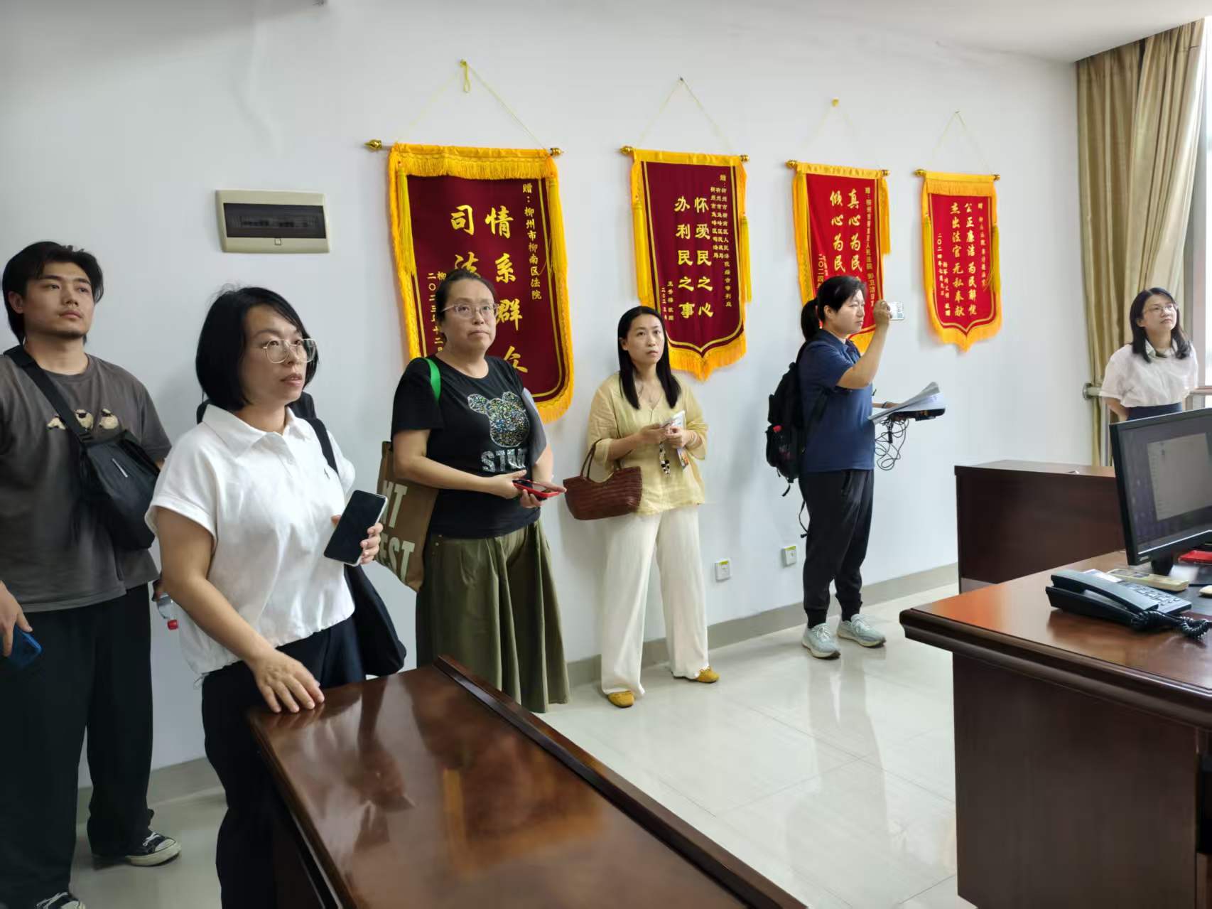 頂圖:記者參觀柳南區人民法院「龍城新橋」行政爭議調解室