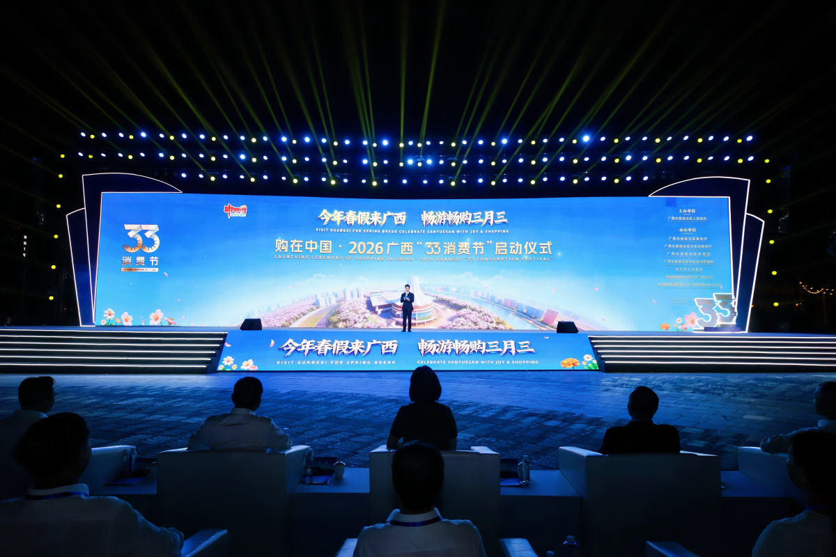 4月15日晚,「今年春假來廣西 暢遊暢購三月三」——購在中國·2026廣西「33消費節」啟動儀式在南寧亭子碼頭舉行。廣西壯族自治區黨委常委、自治區副主席盧新寧出席並致辭,向全國遊客發出春假邀約。本次活動以科技賦能、商文旅體健融合、惠民讓利為核心,持續擦亮廣西消費品牌,全面激活八桂假日市場。