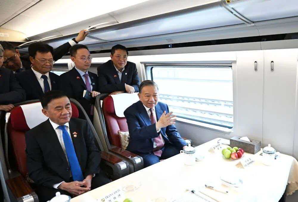4月16日上午,越共中央總書記、國家主席蘇林乘高鐵離開北京,啟程前往廣西,繼續在中國的訪問行程