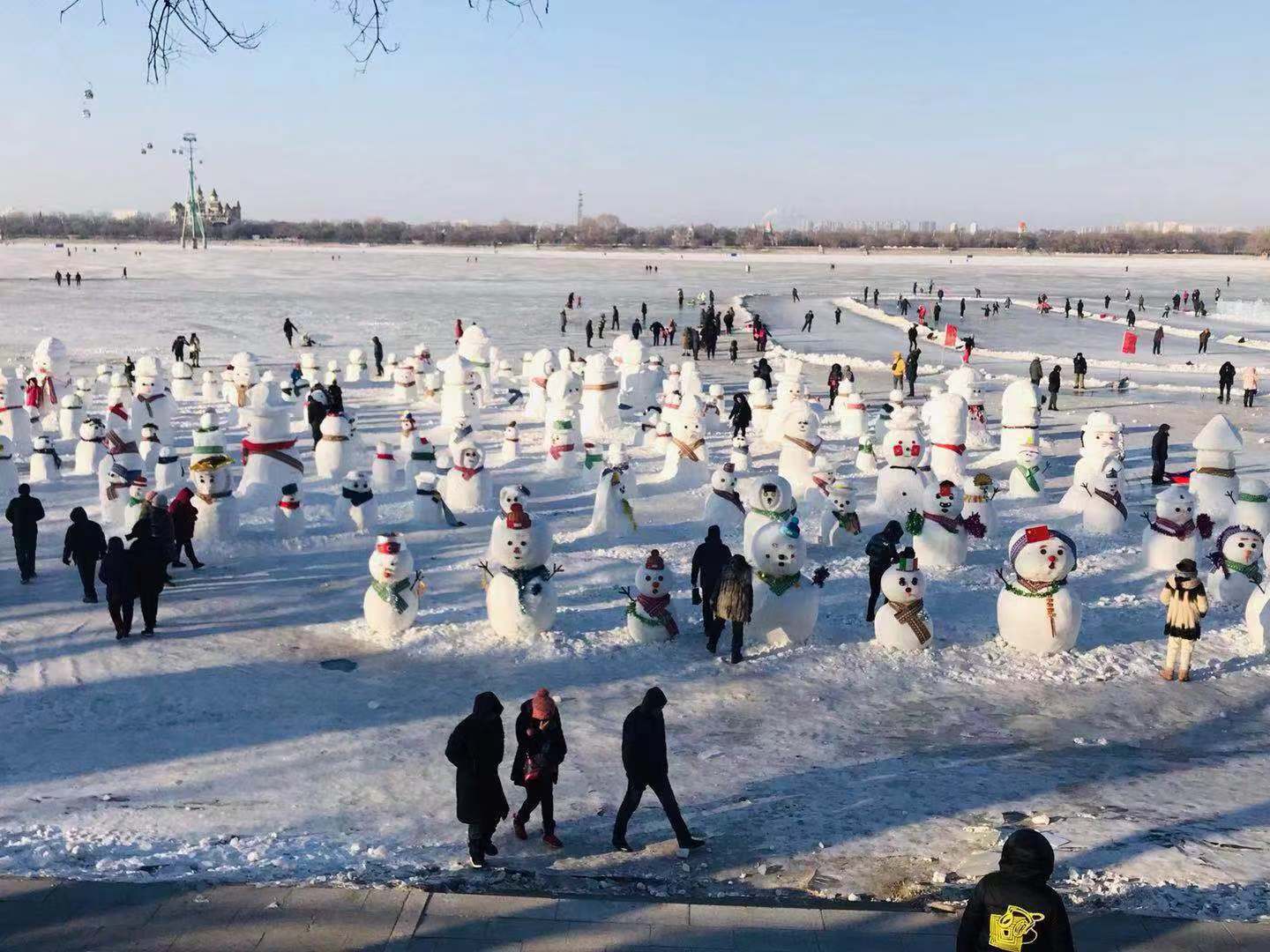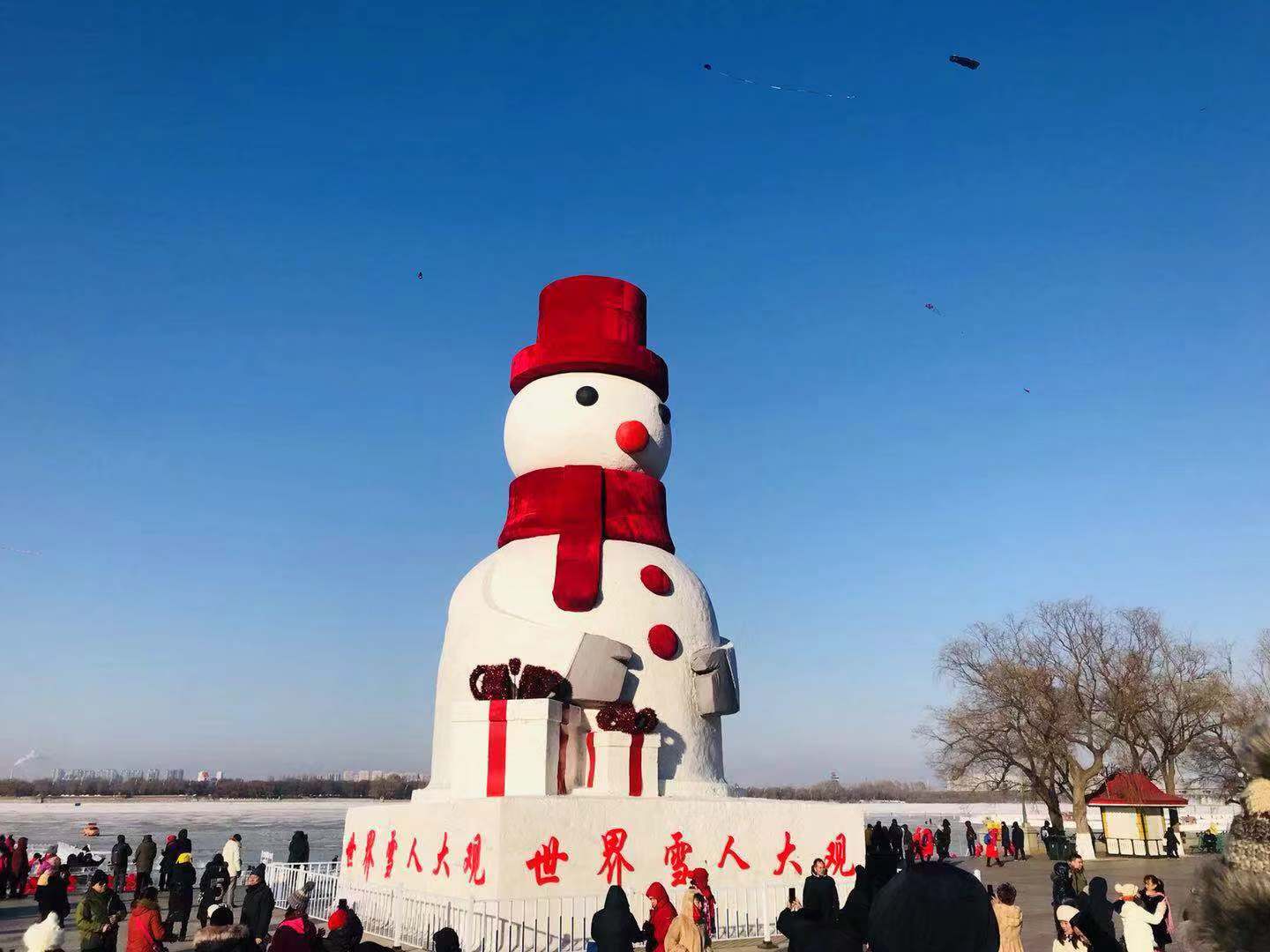在九站公園江堤上、通江廣場下的部分安全區域江面上與江堤踏步上,“雪人大觀”以簇團式佈局,分為中國區、世界區、冰城區等各具特色的區域,所有雪人不設圍欄,全部免費開放。在通江廣場,20.19米高的雪人高高佇立,這是世界上最高的雪人,已申報世界吉尼斯紀錄,是這個冬天哈爾濱的新地標。