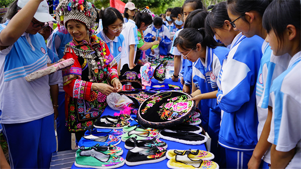 這是南澗縣民族文化進校園的一個縮影。「除了同跳一支舞外,我們還將『剪紙』、『南澗跳菜』、『彝族刺繡』等非物質文化遺產引入校園,營造了人人熱愛非物質文化遺產、人人傳承非物質文化遺產的濃厚氛圍,增強青年學生對中華文化的認同感和自豪感。」南澗縣民族中學的彭興曉老師講解說。