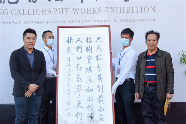 黃水龍(右一)向深圳市美術館贈送書法作品