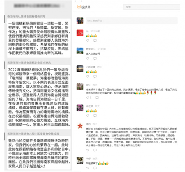 中華大家庭,四海皆同春。本次晚會分享了一個創新、開放、發展的自貿港,與分佈在世界各地的海外瓊籍僑胞和港澳臺同胞彙聚一堂,聯親情、話鄉誼、謀發展。這不僅加深了眾多網友對海南文化的瞭解與認同,更讓其感受到無論身在何處,海外僑胞和港澳臺同胞們都與家鄉血脈相連。