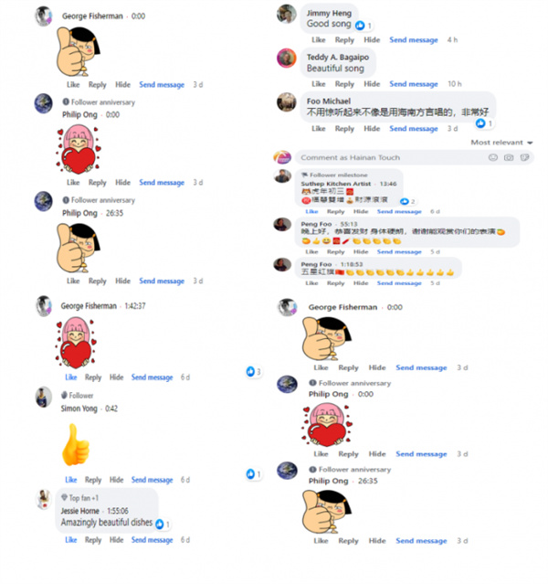 其中由馬來西亞瓊籍鄉親符理策創作,青年女歌手顏業楓演唱,馬來西亞海南會館聯合會推薦的海南方言歌曲《不用怕》得到眾多海內外瓊籍鄉親的喜愛,二十四小時覆蓋量達20萬。