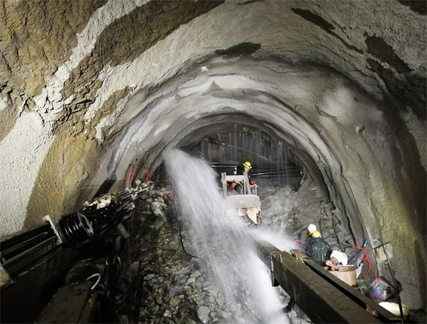 「隧道施工穿越生態水環境敏感區,裂隙水豐富,施工中稍有不慎,極易造成地表水源點失水風險,是全線唯一一座地下水排放採取以堵為主、限量排放的隧道。」中鐵五局大瑞鐵路項目部經理夏俊勇說。