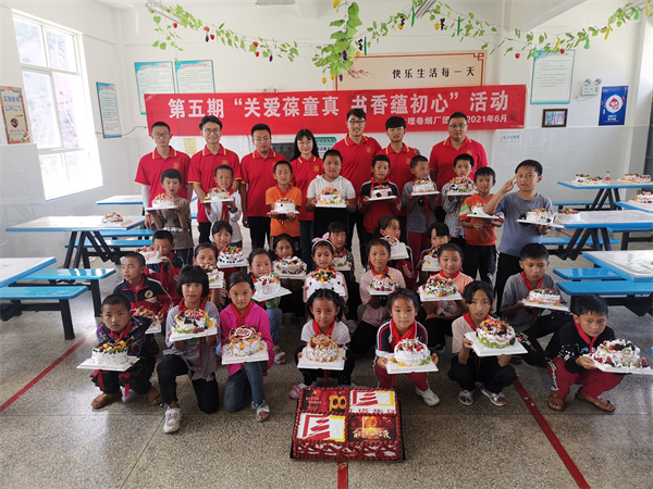 三年級的王曉鎧,沒有出過遠門,看到電視裏小朋友過生日有奶油蛋糕,非常羨慕,他在「便利貼」上寫下了「希望每個兒童節能吃到奶油蛋糕」的微小願望。早陽村黨總支書記李華了解到這一情況後,非常觸動,在城裏孩子看起來稀鬆平常的「奶油蛋糕」里竟然埋藏着山區孩子羨慕不已的「快樂密碼」,於是通過村企共建黨支部活動的方式認領了這份「集體微心願」。自2018年起,每年6月1日組織村企廣大黨員、團員帶着奶油、雞蛋、麵粉,與孩子們共同做一個甜甜的「兒童節蛋糕」。