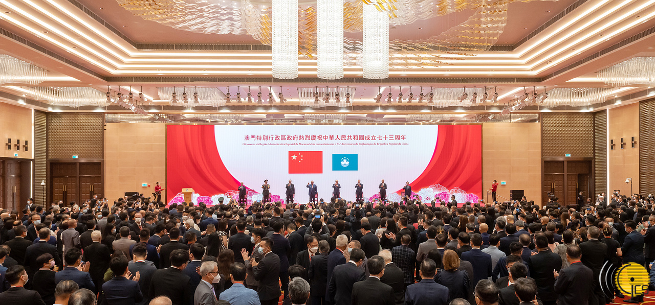 澳門慶祝中華人民共和國成立73周年招待酒會在中國與葡語國家商貿合作服務平台綜合體舉行。