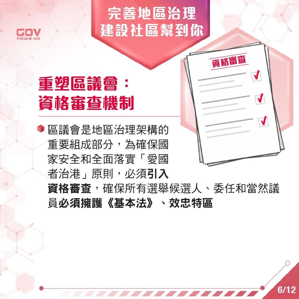 李家超說,為確保國家安全及全面落實「愛國者治港」原則,區議會將引入資格審查制度,無論從何種渠道成為區議員,都要先透過資格審查機制確認。