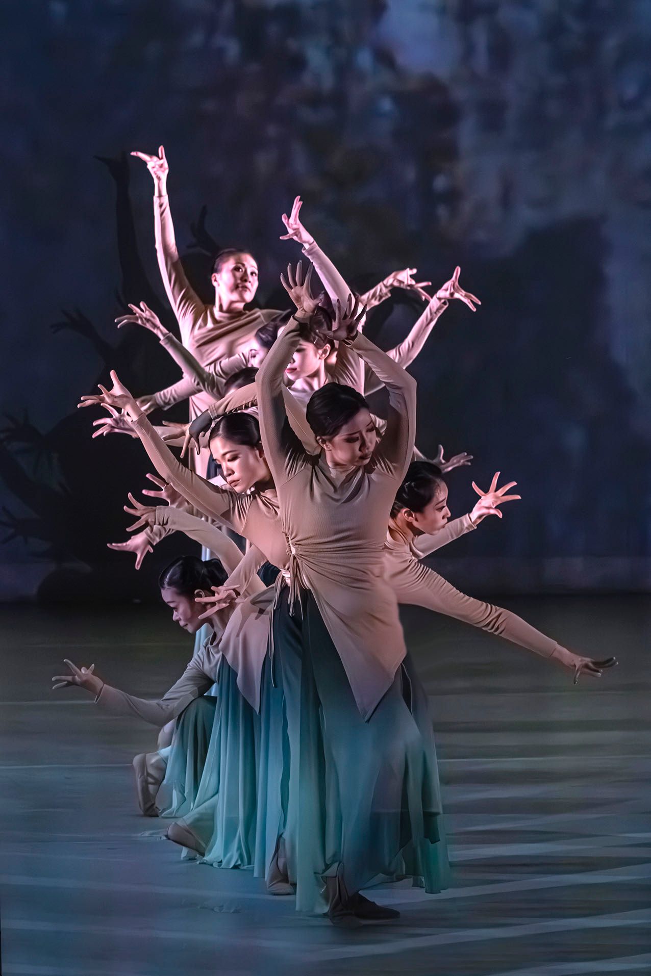 本次表演的《和春之祭共舞》是三個主題,和與大自然展現的意境非常中國,春夏秋冬,流動的清泉,樹、流水、松,還有雲山飛瀑,大自然的靈動,在現場也有冥想的衝動。