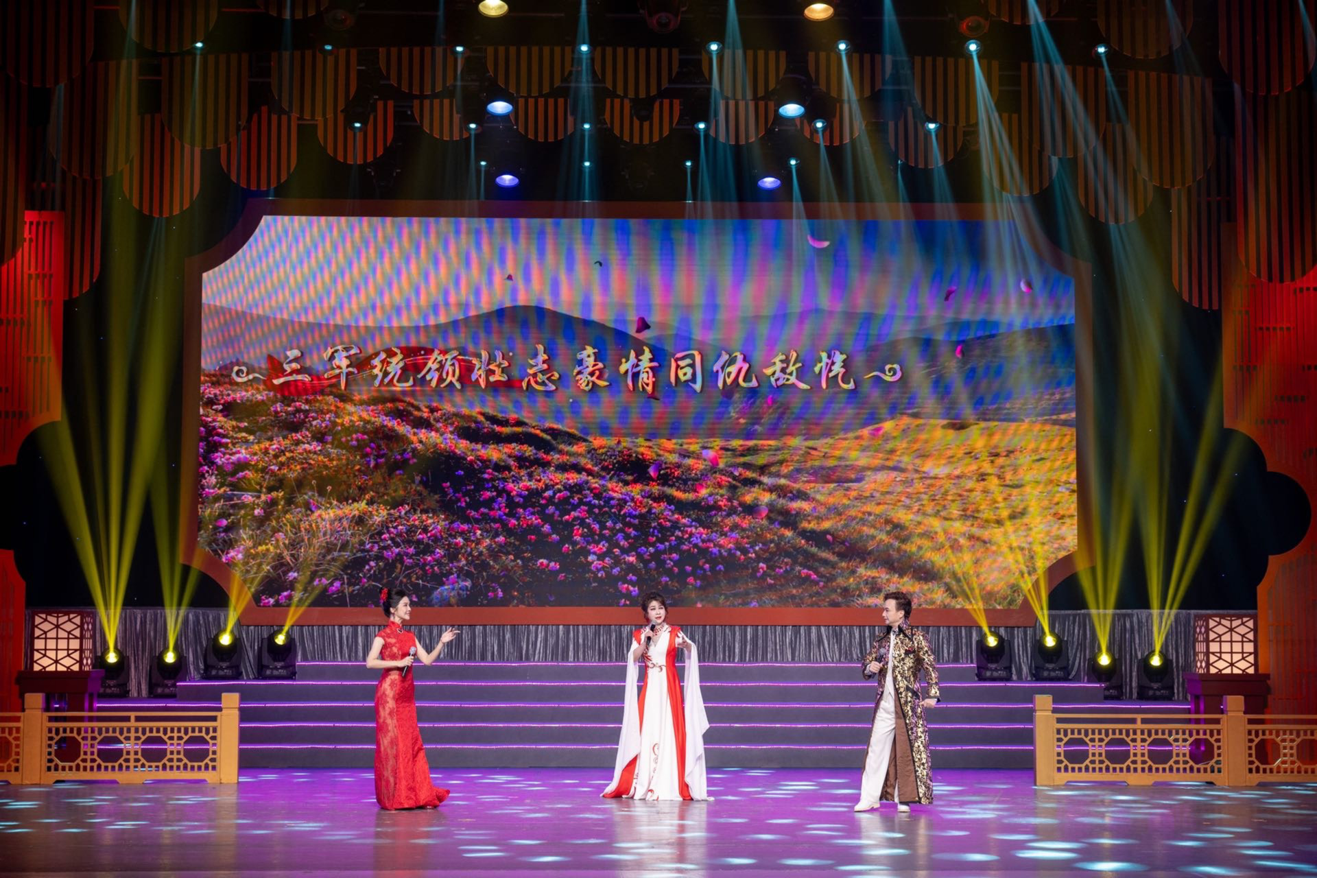廣東曲藝名家梁玉嶸、澳門曲藝名家朱振華、香港青年曲藝演員林穎施共同演繹的粵曲《人民就是江山》,大氣磅礴、高昂激越,將整個晚會推向高潮。