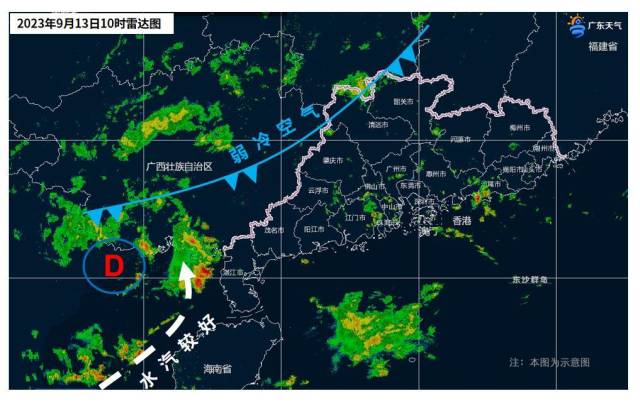 14日,粵西、珠江三角洲市縣有中(雷)雨,局部大雨或暴雨,其餘市縣多雲,有分散(雷)陣雨,局部大雨。最高氣溫:清遠、韶關介於26℃~28℃,其餘大部介於29℃~32℃。