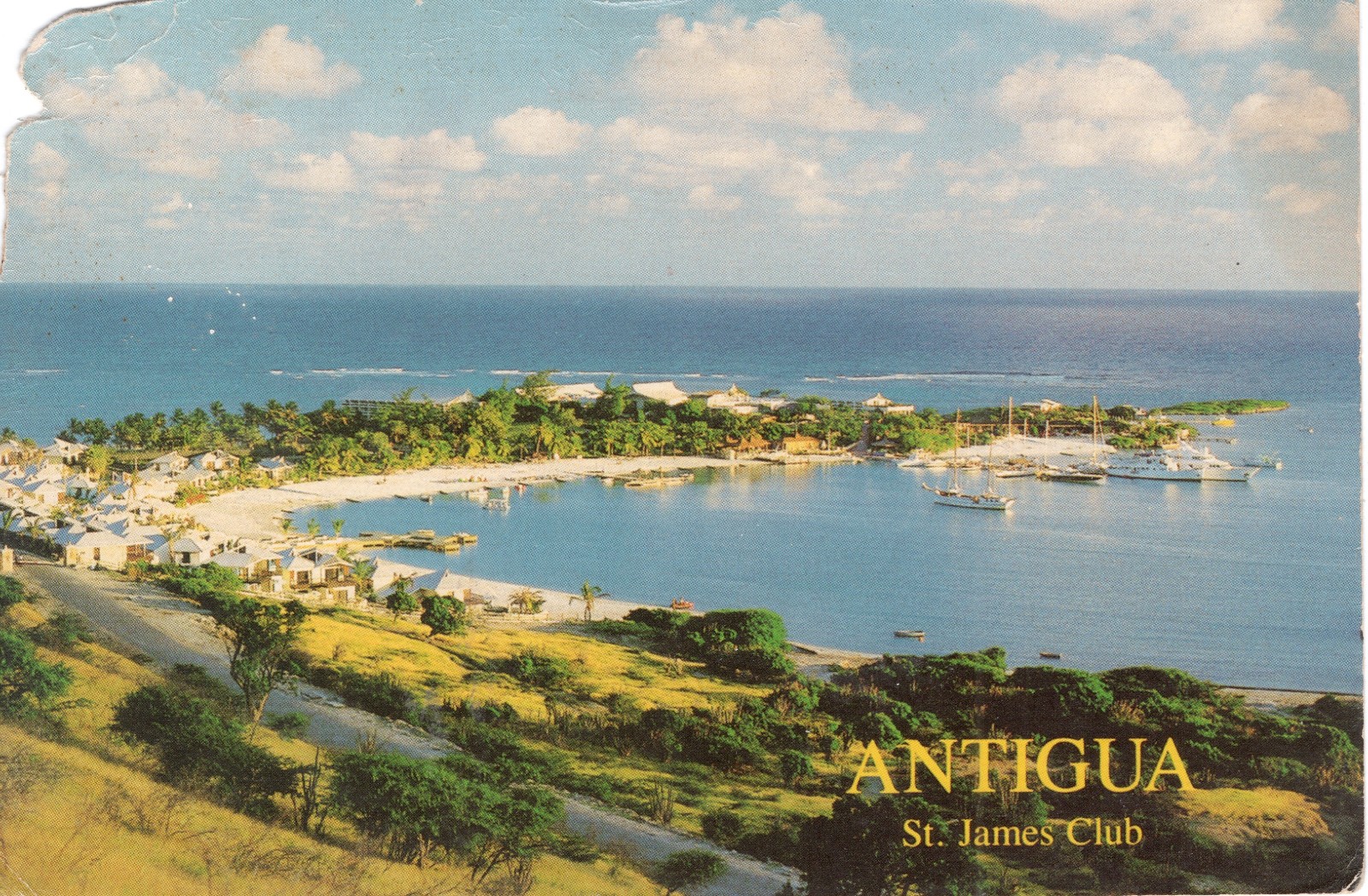 展品「來自安提瓜聖約翰俱樂部明信片」,1988年。(圖片由弗蘭克·沃爾特家族及芭芭拉·帕卡提供)