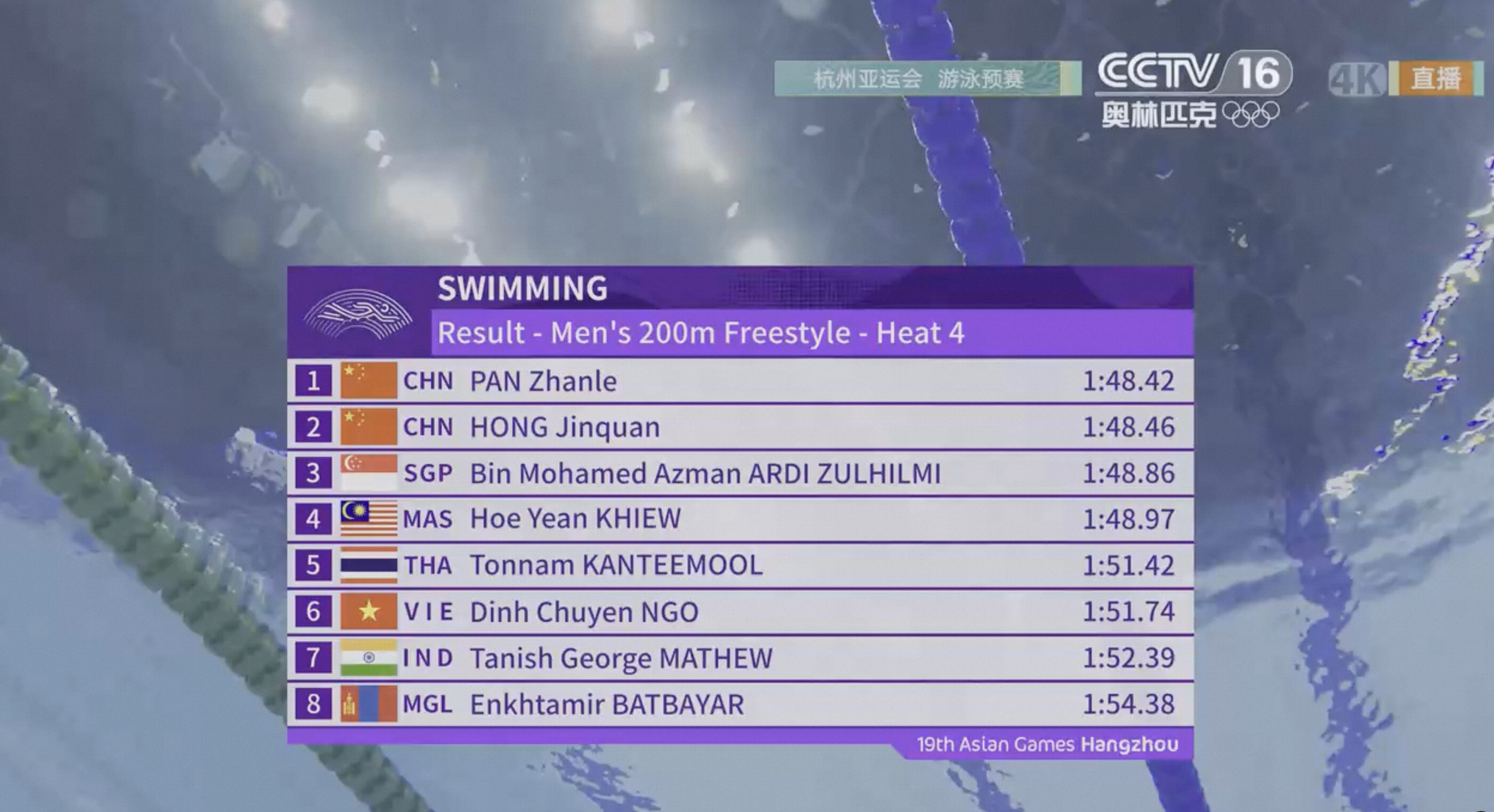圖說:賽果實時同步顯示在電視及線上終端(截取自央視)