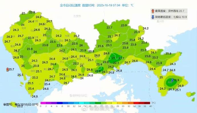 今天早晨,在降雨的影響下,目前全市氣溫普遍在24-25℃,早晨體感有些涼,預計白天最高氣溫在28℃左右。
