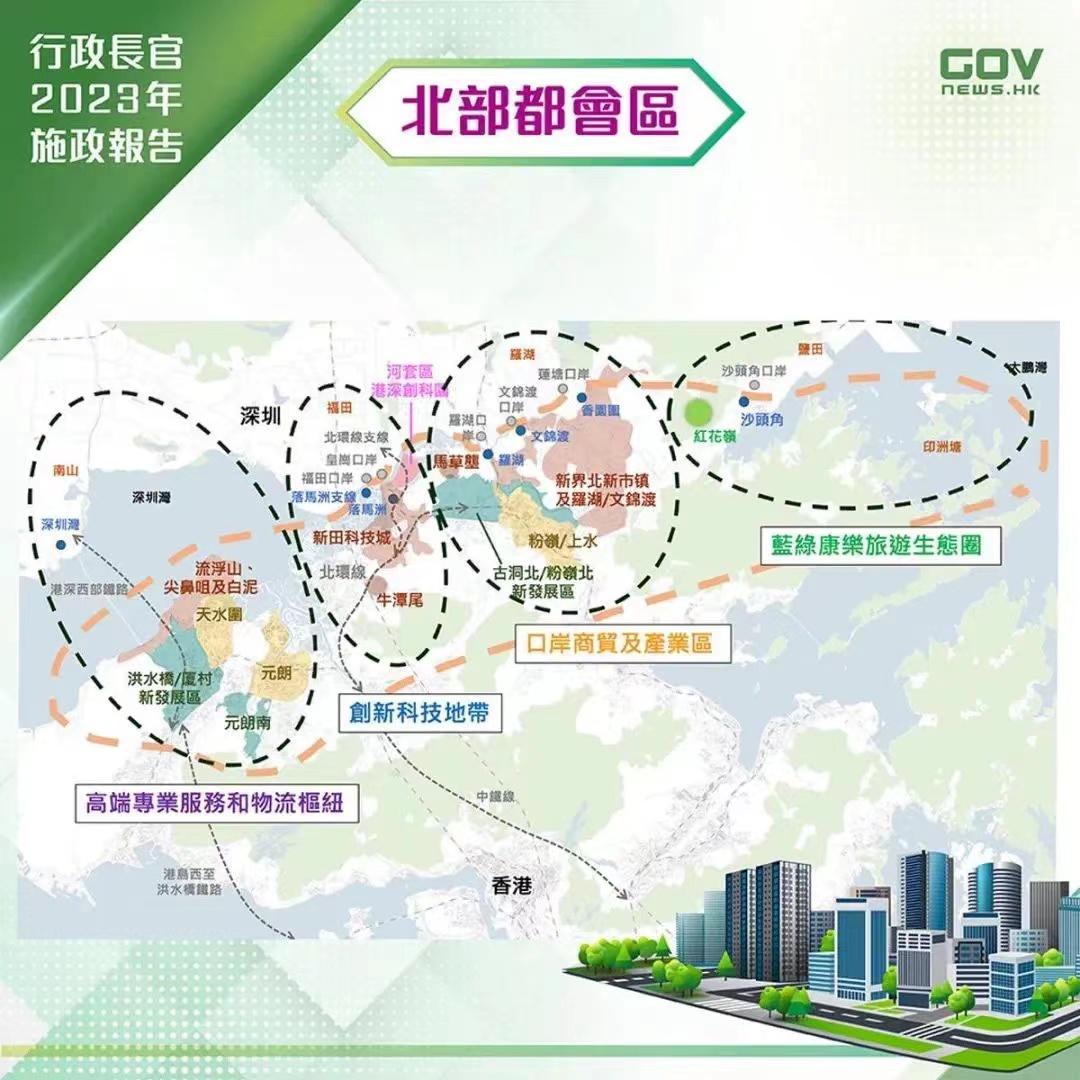 「北部都會區是香港未來發展的新引擎,將在短期內公布《北部都會區行動綱領》。」10月25日,香港特區行政長官李家超在發表2023年施政報告時表示,將規劃北部都會區深度對接深圳和大灣區其他城市。規劃以「產業帶動,基建先行」為主軸,成為香港融入國家發展大局的重大節點,北部都會區將分為四大區域,其中口岸商貿及產業區位於羅湖。
