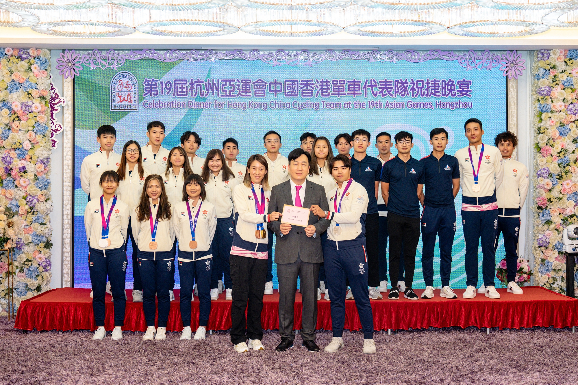 為慶祝中國香港單車代表隊在杭州亞運勇奪1金3銀2銅的佳績,中國香港單車總會今晚(2日)舉辦了祝捷晚宴,並向港隊車手頒發獎金以示鼓勵。