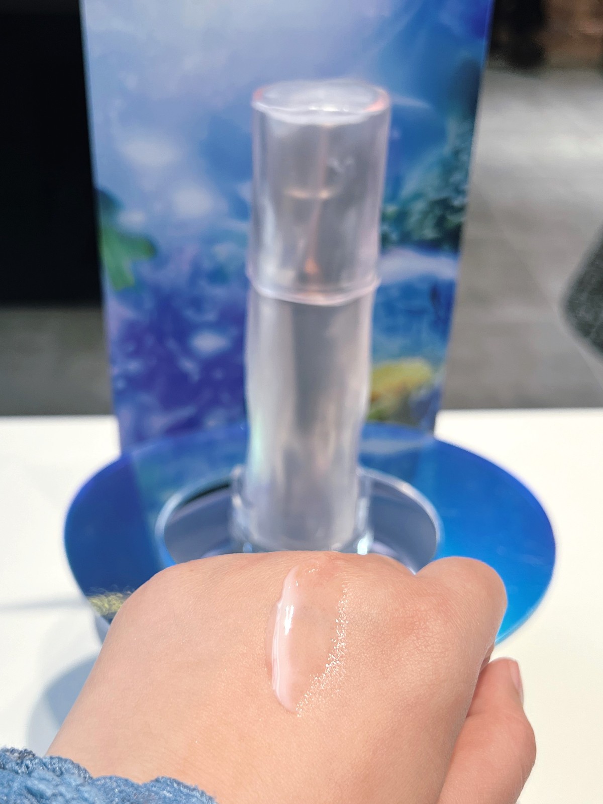 精華液早晚泵1至2下於掌心並塗抹全臉,質地潤澤不油膩,並可感受令人放鬆思緒的香氣。