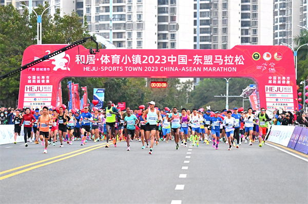 12月24日,由廣西壯族自治區體育局、防城港市人民政府主辦的2023中國—東盟馬拉松在廣西防城港市鳴槍開跑。據悉,來自中國和印度尼西亞、新加坡、老撾、越南、文萊等東盟十國,以及塞爾維亞、烏茲別克斯坦、埃塞俄比亞、肯尼亞等20個國家1.8萬多名選手齊聚全海景生態海灣城市——防城港,在享受運動樂趣的同時,盡情領略美麗的濱海風光和邊關人文風情。