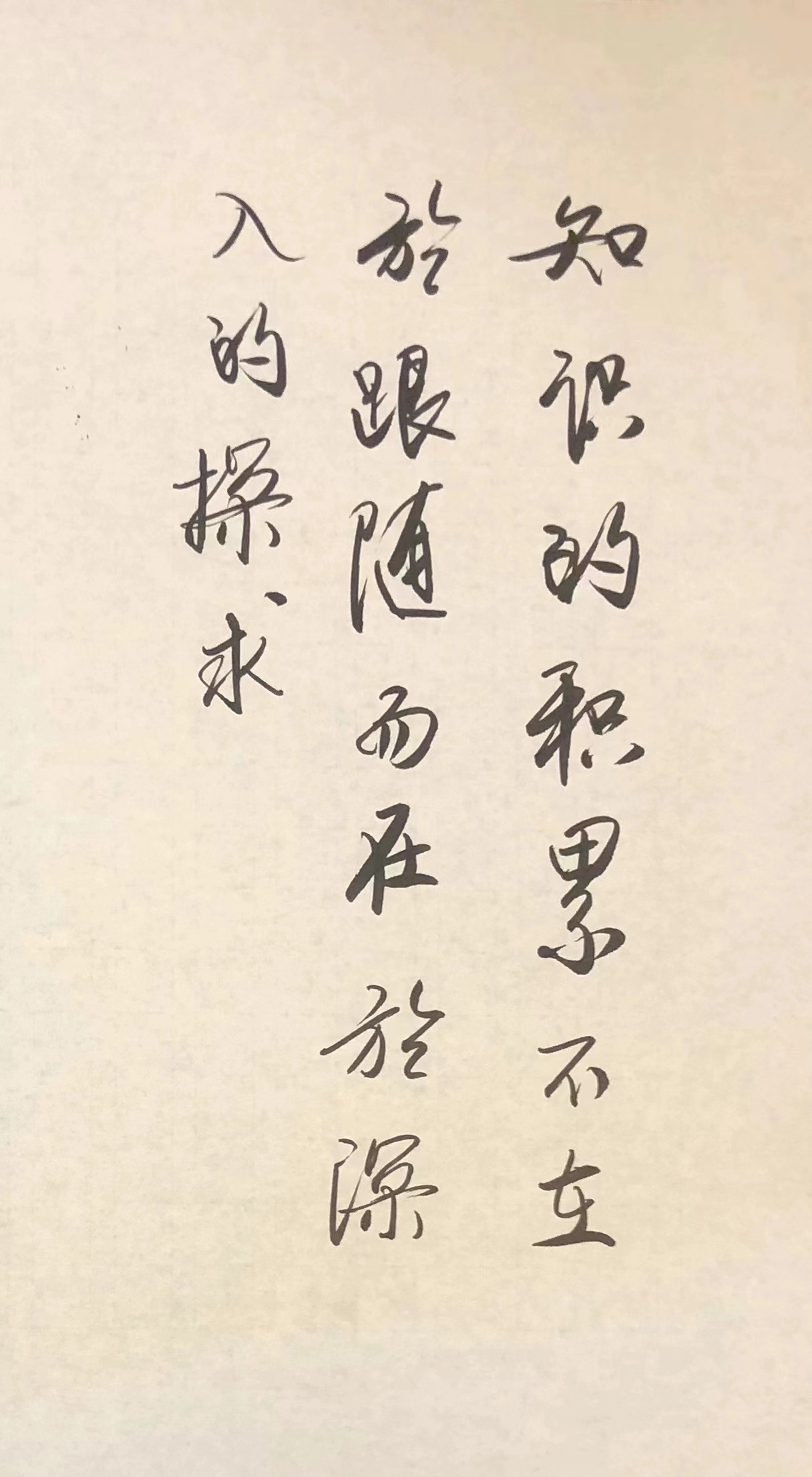 本欄作者的《知識的積累不在於跟隨而在於深入的探求》書法作品。