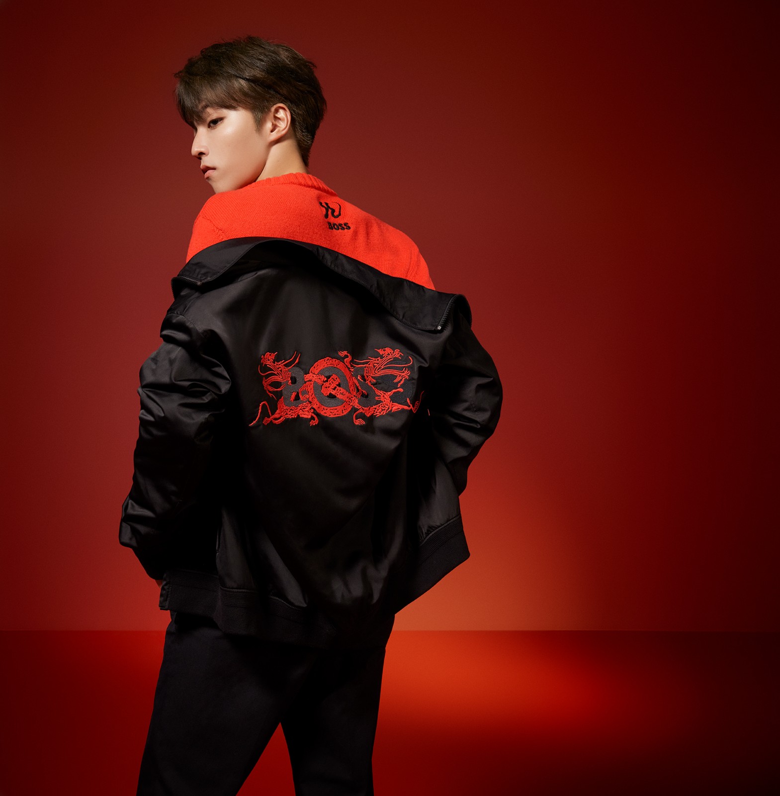 BOSS攜小說家、書法藝術家馮唐,打造以傳統書法為靈感的龍年限定系列。系列靈感源自漢字和東方傳統圖案,書寫出富現代感的字體「龍」,雙龍穿璧紋樣與品牌標識結合,氣勢磅礴,馮唐手書的《洛神賦》字帖和多幅書法作品亦貫穿於此系列。系列以經典紅黑配色為主色調,以米白色點綴,包含經典廓形的學院風棒球外套、休閒運動衫、針織衫和T恤等一系列中性單品。其中,皮革和羊毛混紡學院風棒球外套玩轉材質拼接,點綴龍字圖騰貼飾,結合書法內襯重新詮釋這一外套。