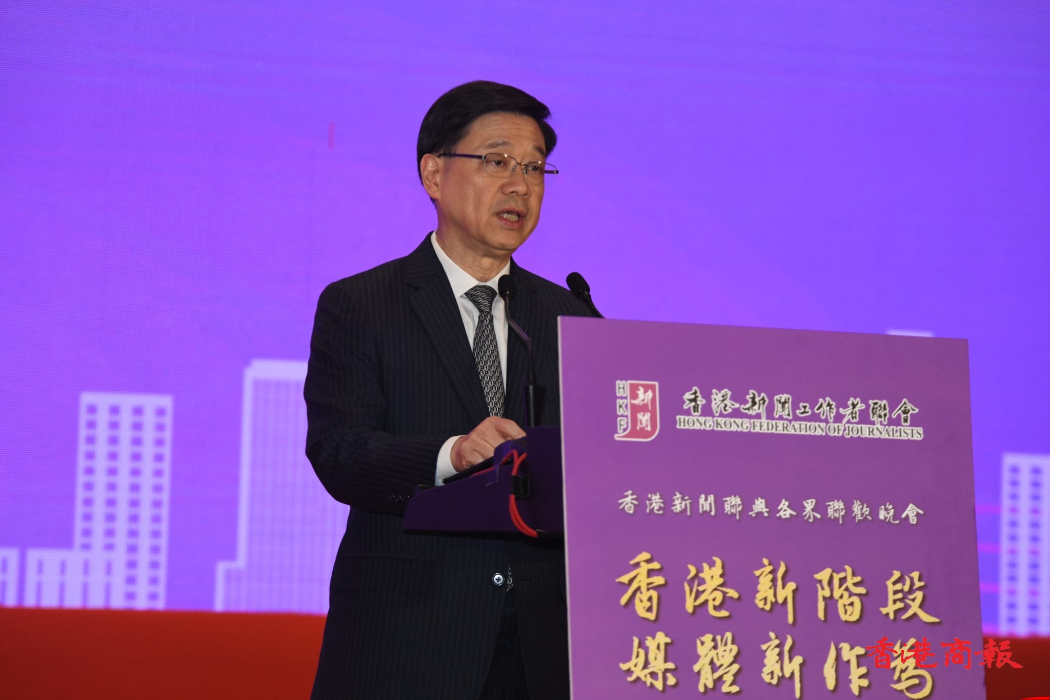 行政長官李家超今日(17日)出席香港新聞工作者聯會與各界聯歡晚會致辭時表示,在香港踏上新征程的關鍵時刻,希望新聞界朝着3個目標與政府並肩同行,包括弘揚愛國心、團結說好香港故事,以及成為政府與市民的溝通橋樑,為建設美好香港,以及為中華民族偉大復興做出貢獻。