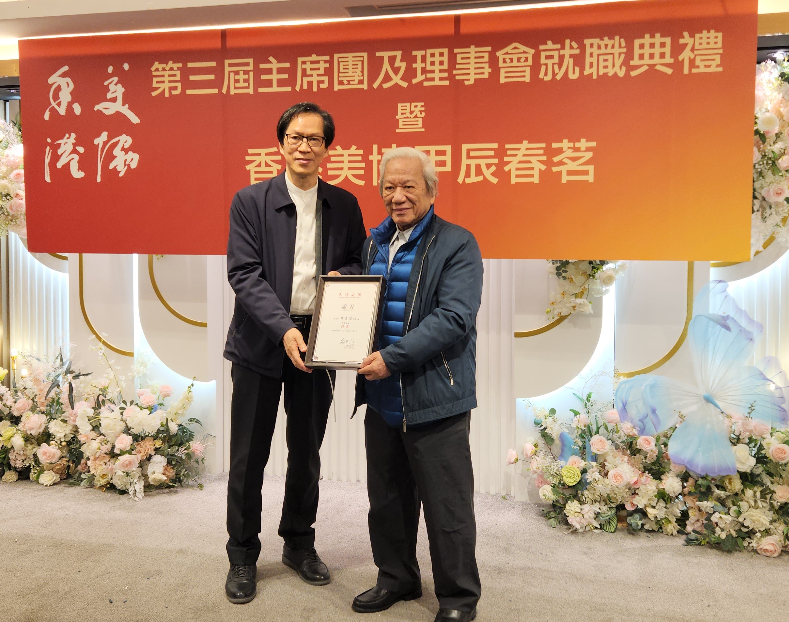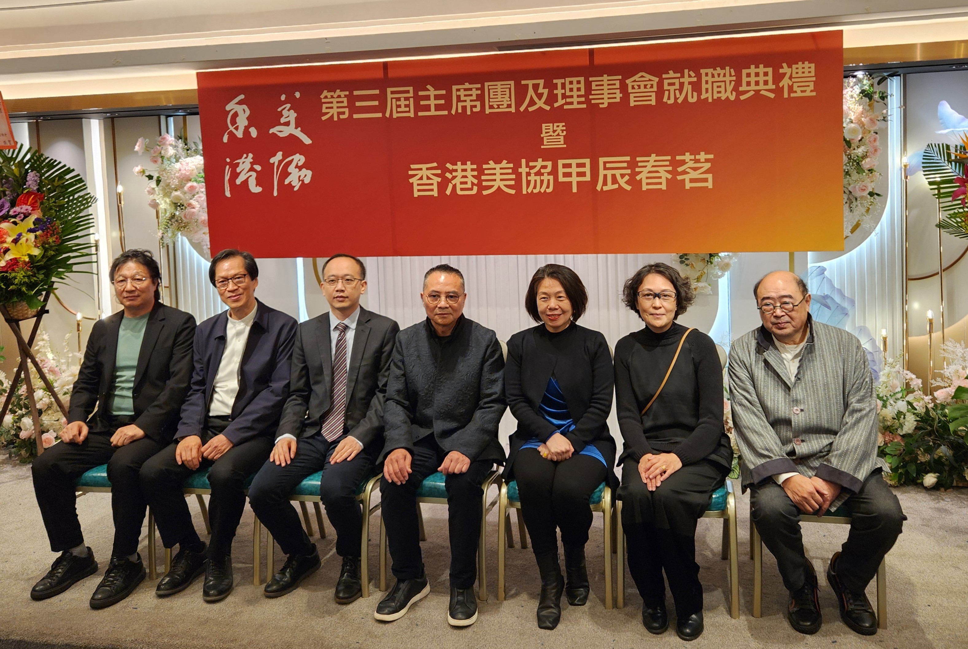 香港美協昨日(10日)於銅鑼灣皇室堡舉行第三屆主席團及理事就職典禮暨甲辰春茗,新一屆主席由著名水墨畫家林天行就任。春茗舉行前,協會召開第三屆香港美協理事會以及會員大會。