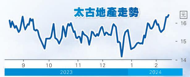 展望今年香港物業市道,太古地產於業績公告稱,在需求偏軟及供應量增加的情況下,預計今年香港辦公樓市場維持疲弱;觀乎來自中區和九龍東的競爭加劇,將繼續對整個辦公樓組合的租金構成下調壓力;但企業追求更佳質量的辦公樓漸成趨勢,準租戶有意提升辦公室的質素,並日益重視可持續發展和員工的身心健康,因此預期太古地產可從中受惠。