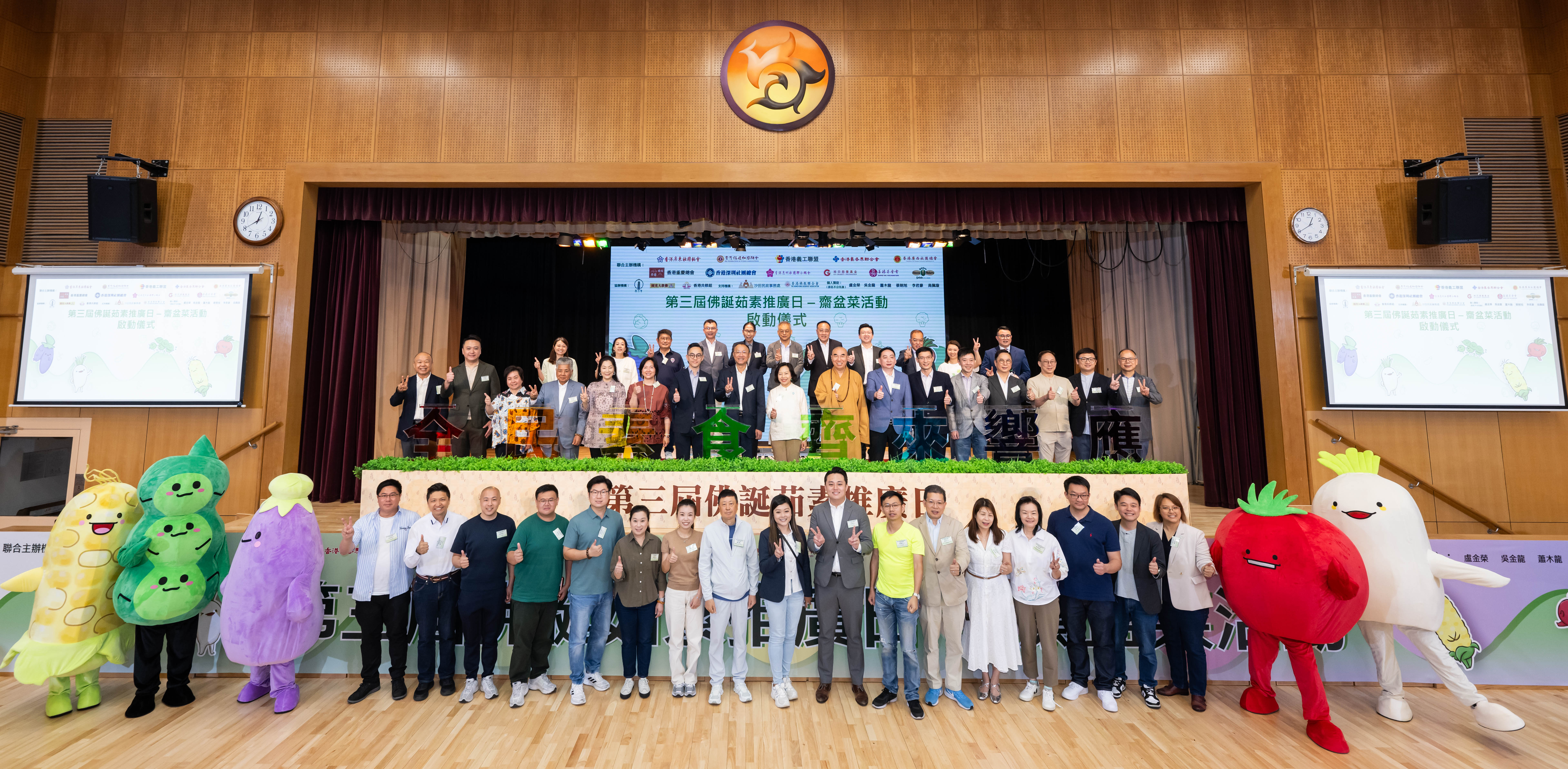 頂圖:香港各界同鄉社團今日於沙田培僑書院聯合舉辦「第三屆佛誕茹素推廣日」齋盆菜活動,近900人出席。