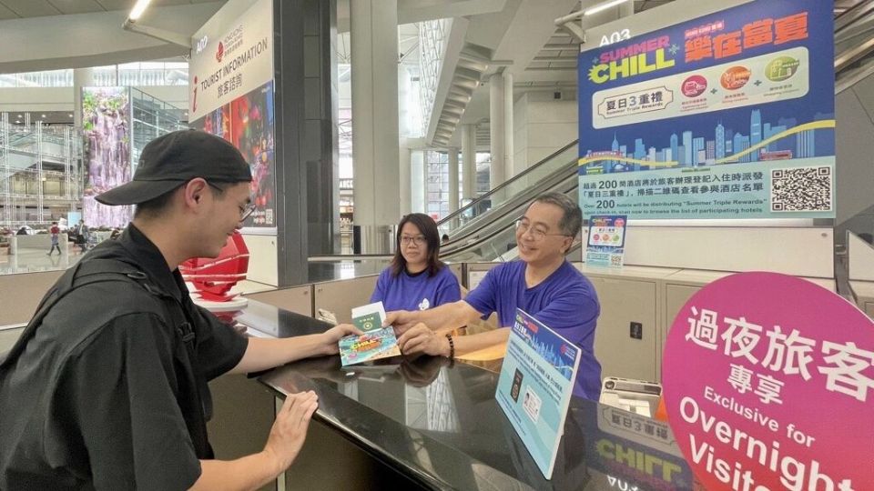 旅發局表示,正展開全新夏日推廣活動「香港·樂在當夏」,即日起向所有訪港過夜旅客送出50萬份「夏日三重禮」,旅客一「禮」在手,可享用交通觀光、餐飲及零售消費折扣優惠。旅客可在參與活動的超過200間本地酒店辦理入住時,或到旅發局指定專櫃免費領取。每名訪港過夜旅客限取一份。