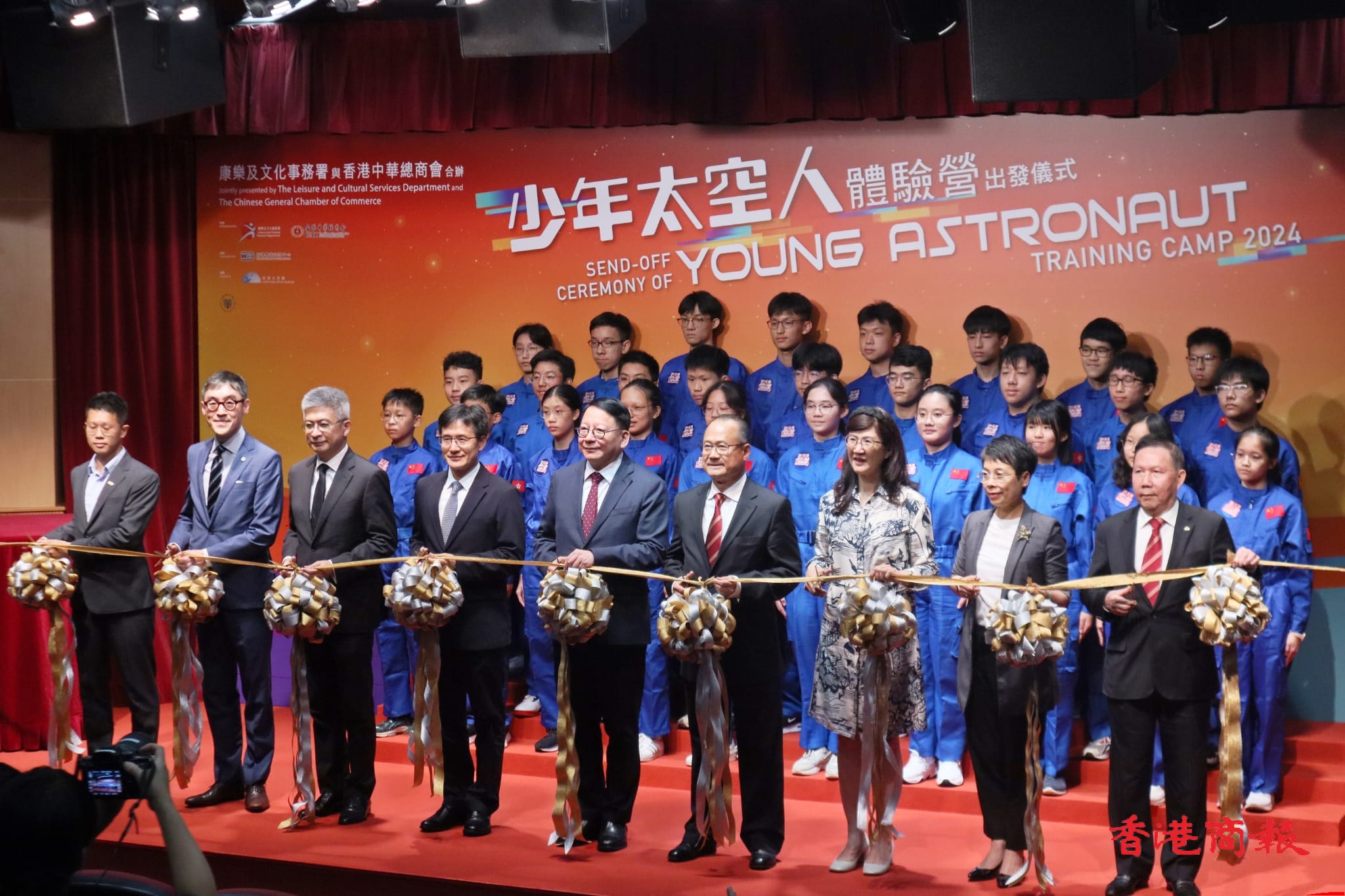 由康文署與香港中華總商會合辦的「少年太空人體驗營」,將於本月26日至8月3日舉行,30名中二至中六學生將從本月26日起前往北京、海南文昌及酒泉等地,參加為期9日的航天員體驗課程。出發儀式今日(16日)於香港太空館舉行。