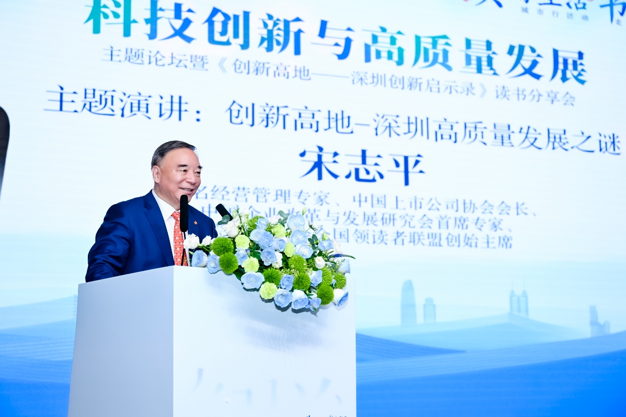 宋志平首先作了《創新高地:深圳高質量發展之謎》主題演講。他認為,新質生產力的核心是創新,而創新是時代的主題。