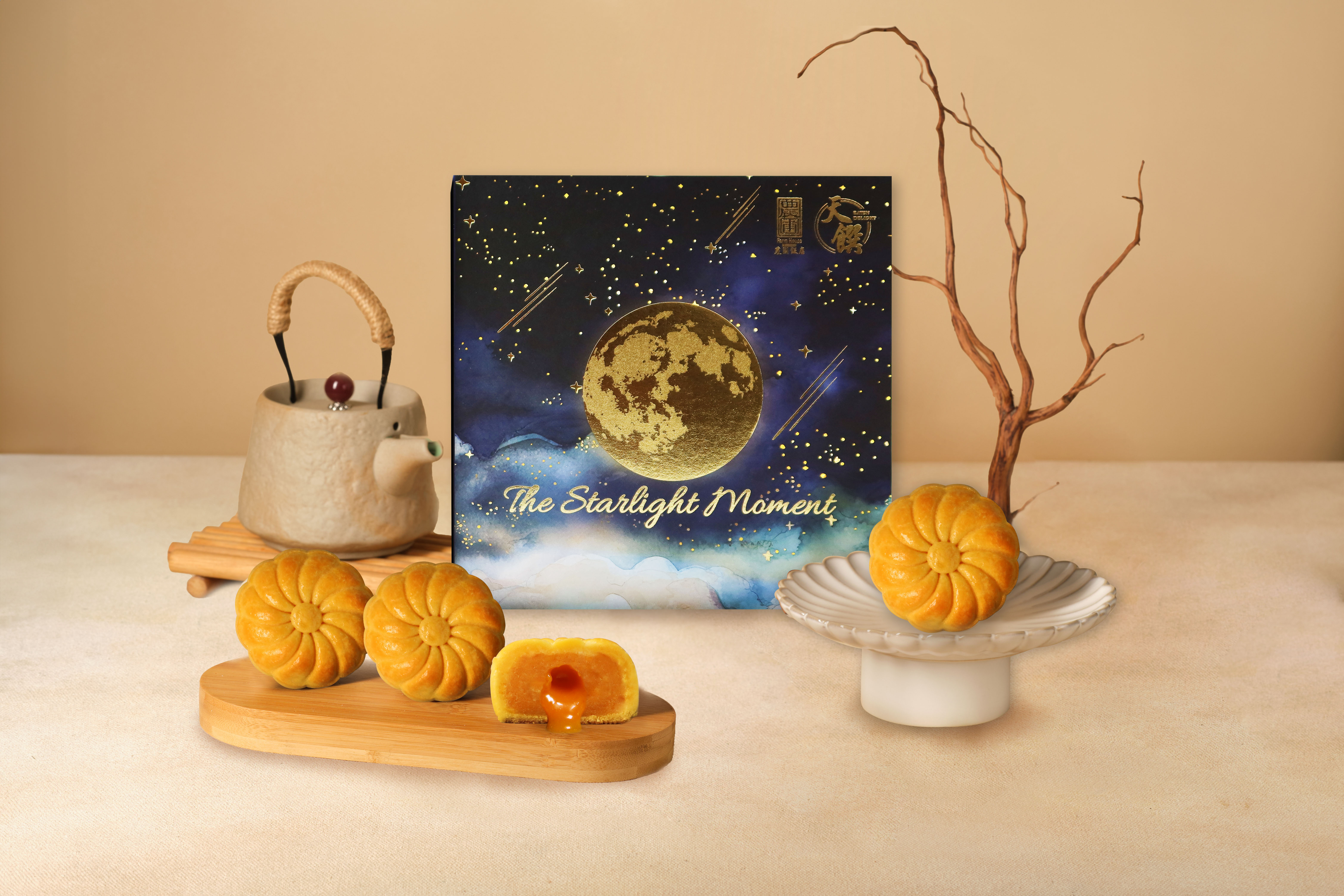 「星光時刻」共兩款禮盒脆皮流心奶黃月餅(四件裝)及三式脆皮迷你月餅(四件裝),以星空為主題設計,今年採用金漆滿月作為封面主體,月餅上印有象徵幸福和團圓的波斯菊圖案。即日起至9月13日,月餅券於官網的線上線下銷售網點發售,並推出多種優惠組合。即日起至8月31日前訂購,可享8折早鳥優惠,月餅券換領日期為8月16日至9月13日。(記者:Karena)