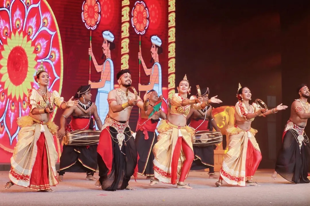 當晚,「刺桐·1459-2024·鯉城」斯里蘭卡之夜實景互動式演出精彩上演。「豐年人樂業,月下踏歌行。今晚受王子殿下的邀請與各位貴賓月夜相聚,實乃人生一大幸事。」在兩名提燈侍女的指引下,「泉州知府」和「科特王子」登場,他們一邊品茶賞樂,一邊觀賞充滿異域風情的斯里蘭卡舞蹈、閩南特色的拍胸舞和南音、悠揚婉轉的洞簫獨奏等表演,一幅聲色十足的「夜宴圖」徐徐展開。