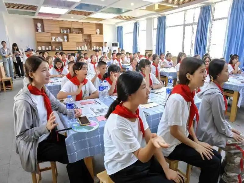 36名來自新疆和田皮山縣的孩子以及蕪湖市少先隊員代表共同體驗了北塘小學愛心暑托點的三個課程,分別為:專屬紅課課程《隊室里的紅色遊戲》、藝術文化課程《繪本里的蕪湖美食》以及校本資源課程《假日裏的快樂社團》。